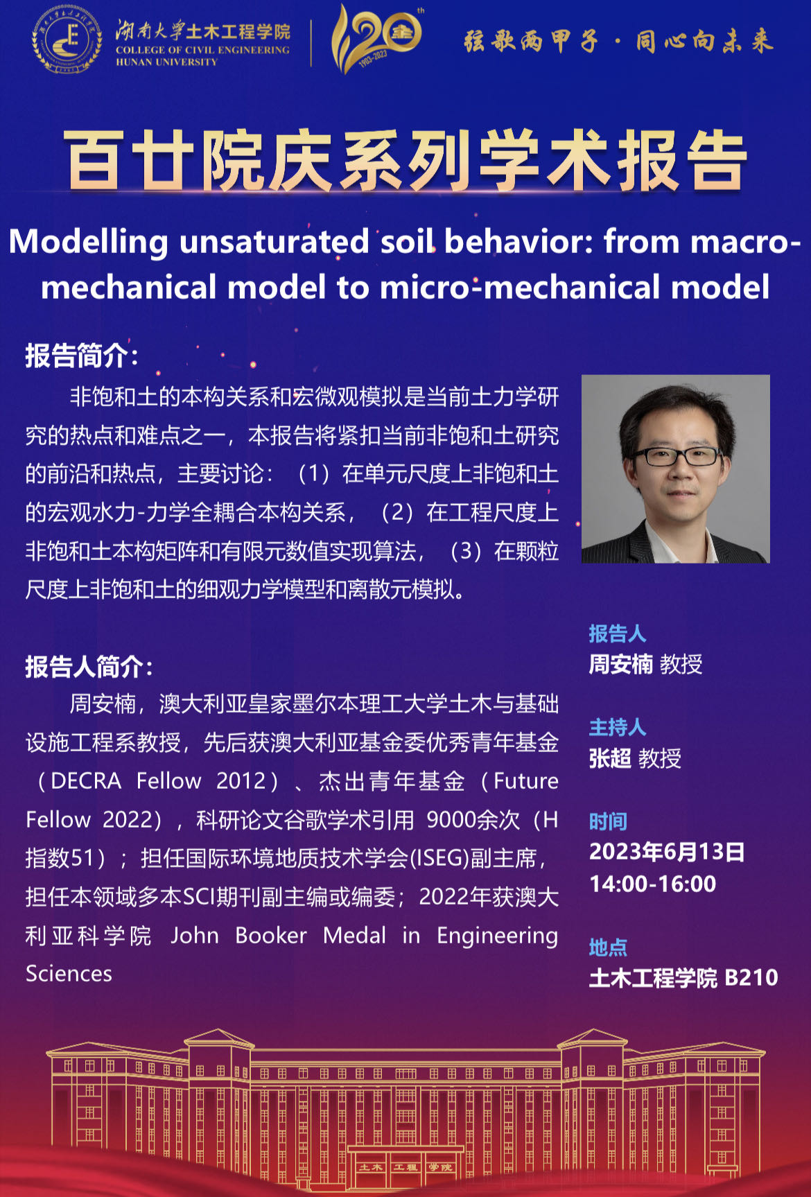 百廿院庆 学术报告|周安楠:Modelling unsaturated soil behavior:from macro-mrchanical model to micro-mechanical madel