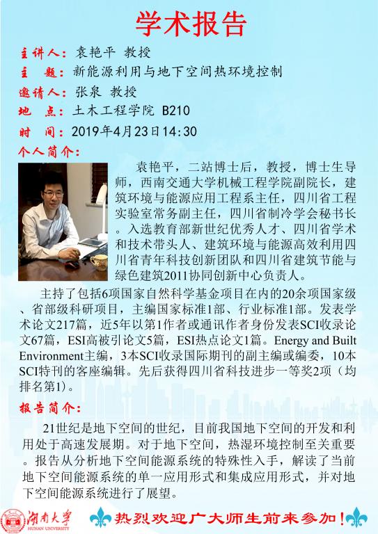 袁艳平:新能源利用与地下空间热环境控制