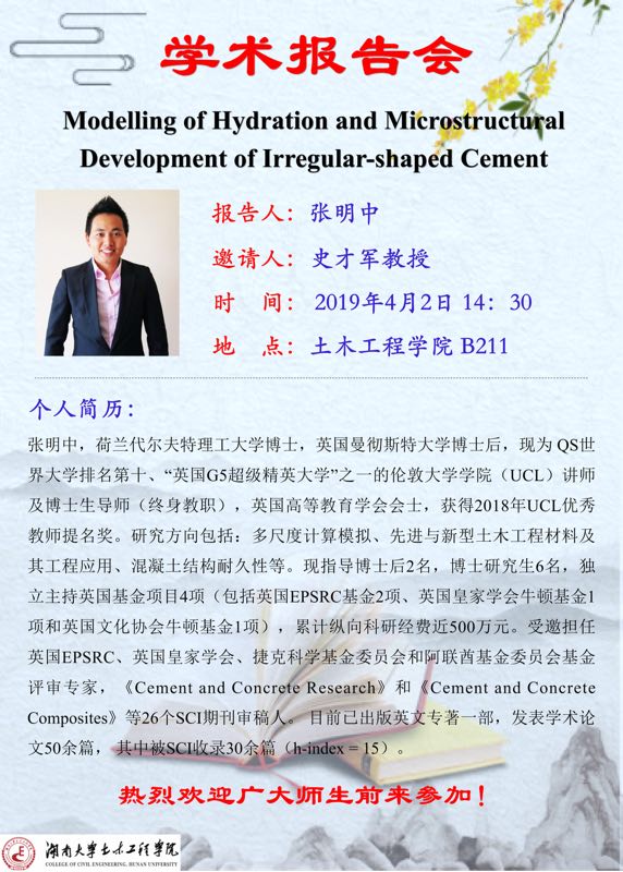 张明中:Modelling of Hydration Microstructural Development of Ieergular-shaped Cement