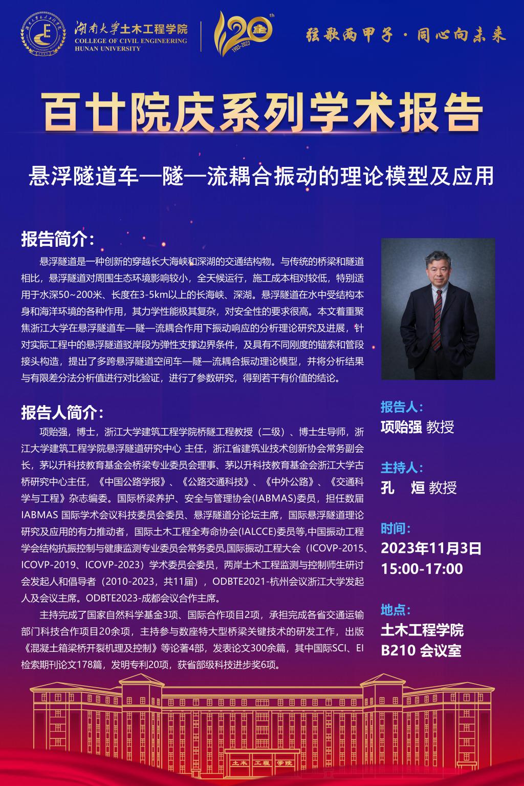 百廿院庆 学术活动|项贻强:悬浮隧道车—隧—流耦合振动的理论模型及应用