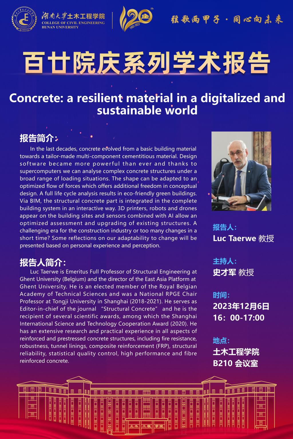 百廿院庆 学术活动|Luc Taerwe:Concrete: a resilient material in a digitalized and sustainable world