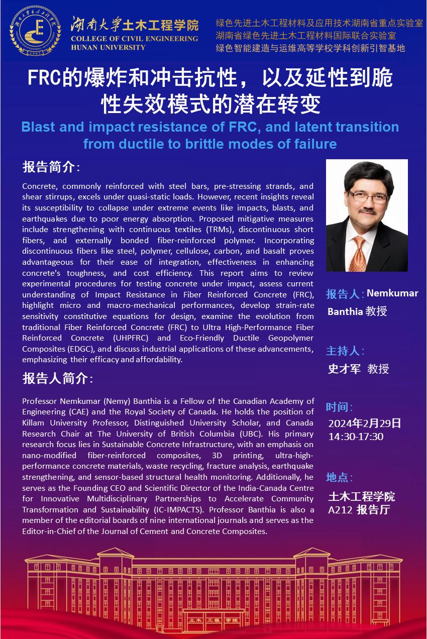 Nemkumar Banthia:FRC的爆炸和冲击抗性,以及延性到脆性失效模式的潜在转变