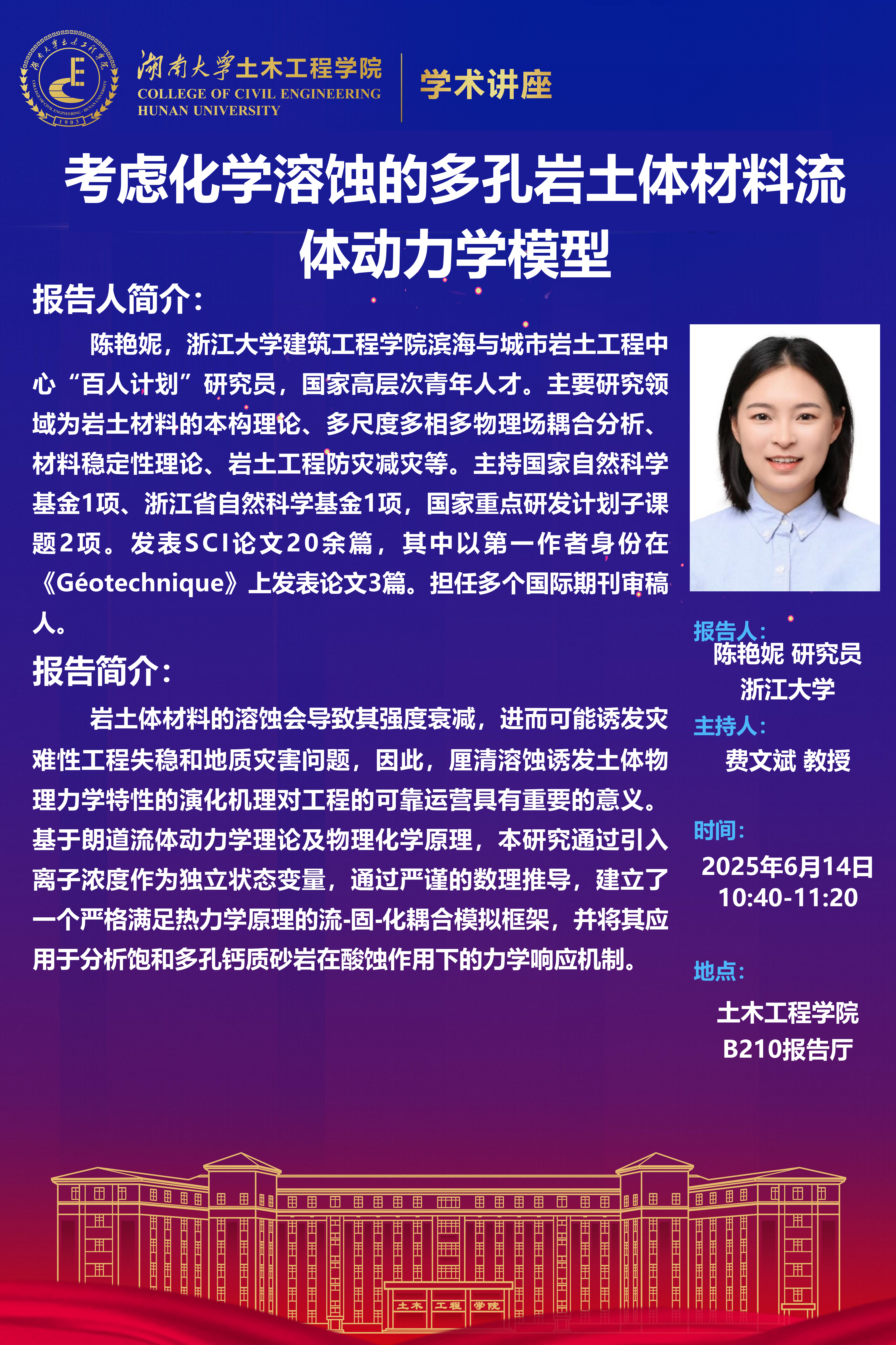 陈艳妮:考虑化学溶蚀的多孔岩土体材料流体动力学模型