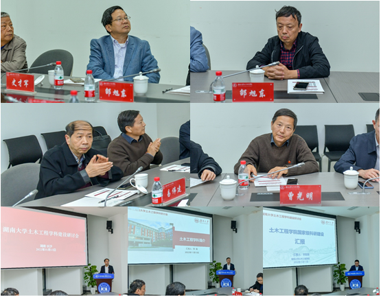 研讨会上,院长邓露汇报了土木工程学科发展建设情况,副院长华旭刚汇报了国家级科研平台建设情况。与会专家学者充分肯定了土木工程学科建设近年来取得的成绩,并就学科面临的挑战与机遇、学科特色方向凝练、前沿交叉学科探索、国家级科研平台建设、交通运输工程一级学科博士点建设、领军人才培育、青年人才发展等方面提出了具有针对性和指导性的意见与建议。