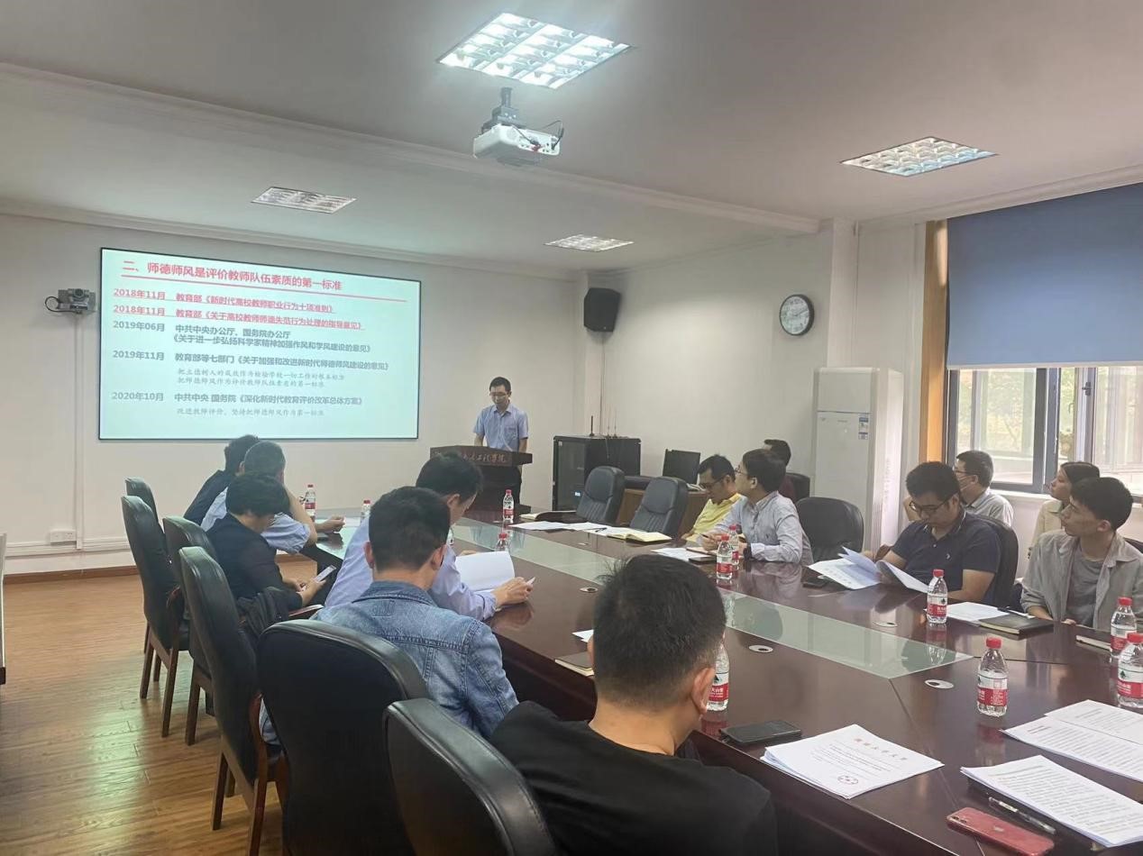 周石庆介绍了国务院、教育部、学校学院关于师德师风建设相关制度文件及要求,结合典型案例详细解读了《新时代高校教师职业行为十项准则》。