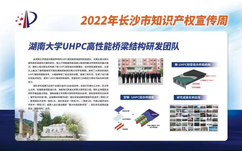4月24日上午,由长沙市人民政府主办的2022年长沙市知识产权宣传周暨首届长沙“优秀发明人”颁奖仪式云端启动。我院邵旭东教授及其领衔的“UHPC高性能桥梁结构研发团队”经过资格审查、网络投票、专家评选等环节,与全市数百位选手及团队同台竞技,被评为长沙“优秀发明人”和“优秀发明团队”。