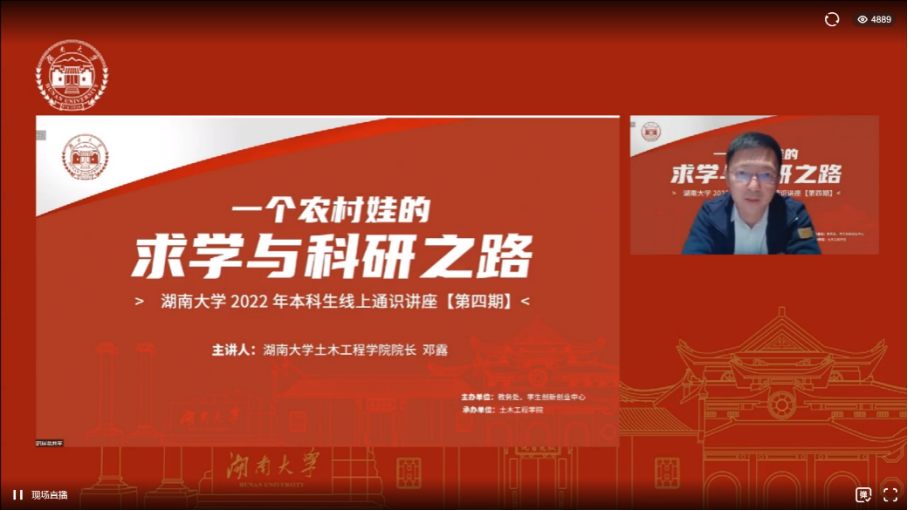 最后,邓露院长深情寄语广大学子,要树立成为国家栋梁之才的远大目标,通过不懈努力成为对社会发展和国家建设有重要贡献的人,并期盼在疫情后与各位学子欢聚在美丽的湖大校园。