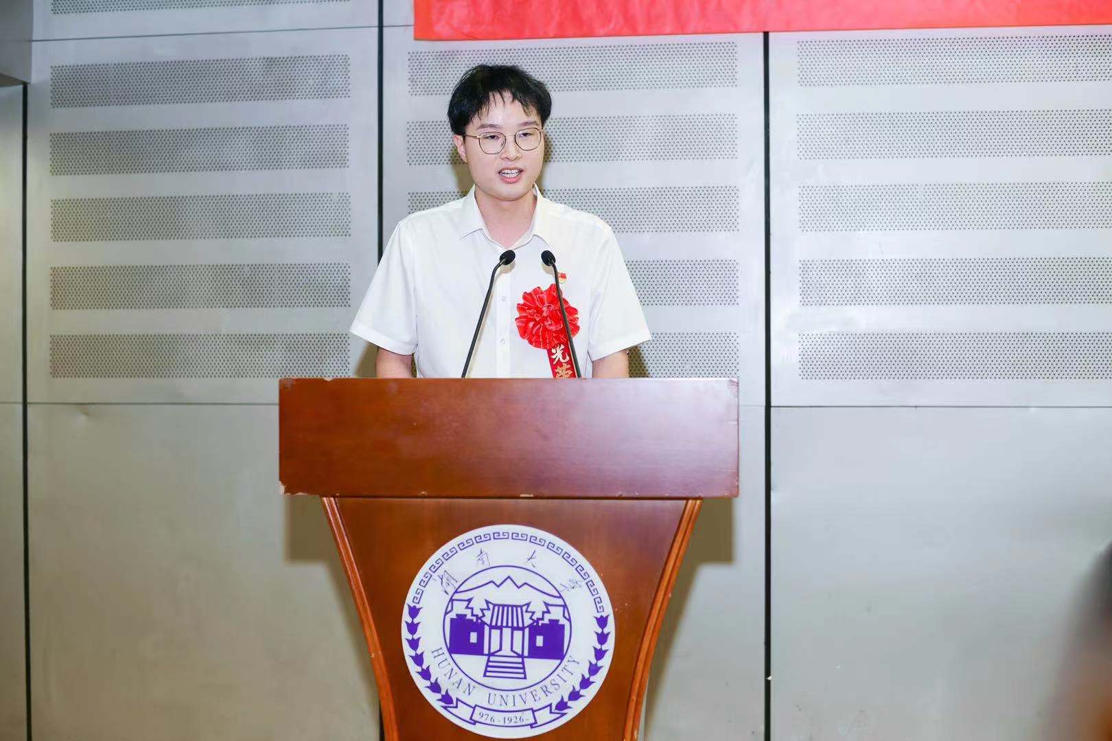 青年教工党员示范岗张超,学院优秀学生党员代表、湖南省普通高校优秀大学生党员江颖,“光荣在党50年”离退休党员代表沈蒲生分别发言。
