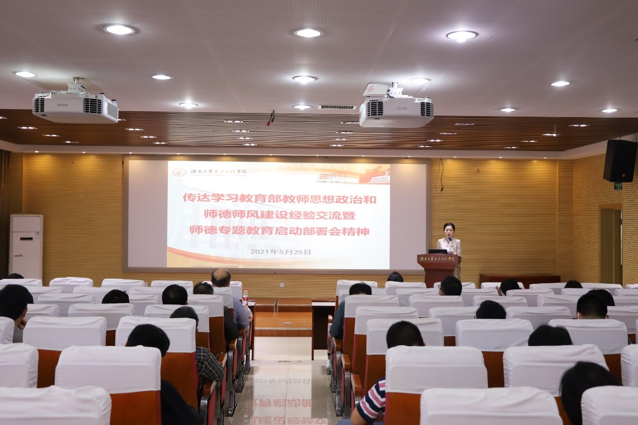 彭嘉芬介绍了学院党委党史学习教育活动成效、湖南省教育系统先进基层党组织申报工作进展等工作,传达了教育部教师思想政治和师德师风建设经验交流暨师德专题教育启动部署会精神,就下阶段有关工作进行了部署。并希望全院职工用心用情用力做实事,同心同向同行谋发展,以实际行动关心、支持学院各项工作。