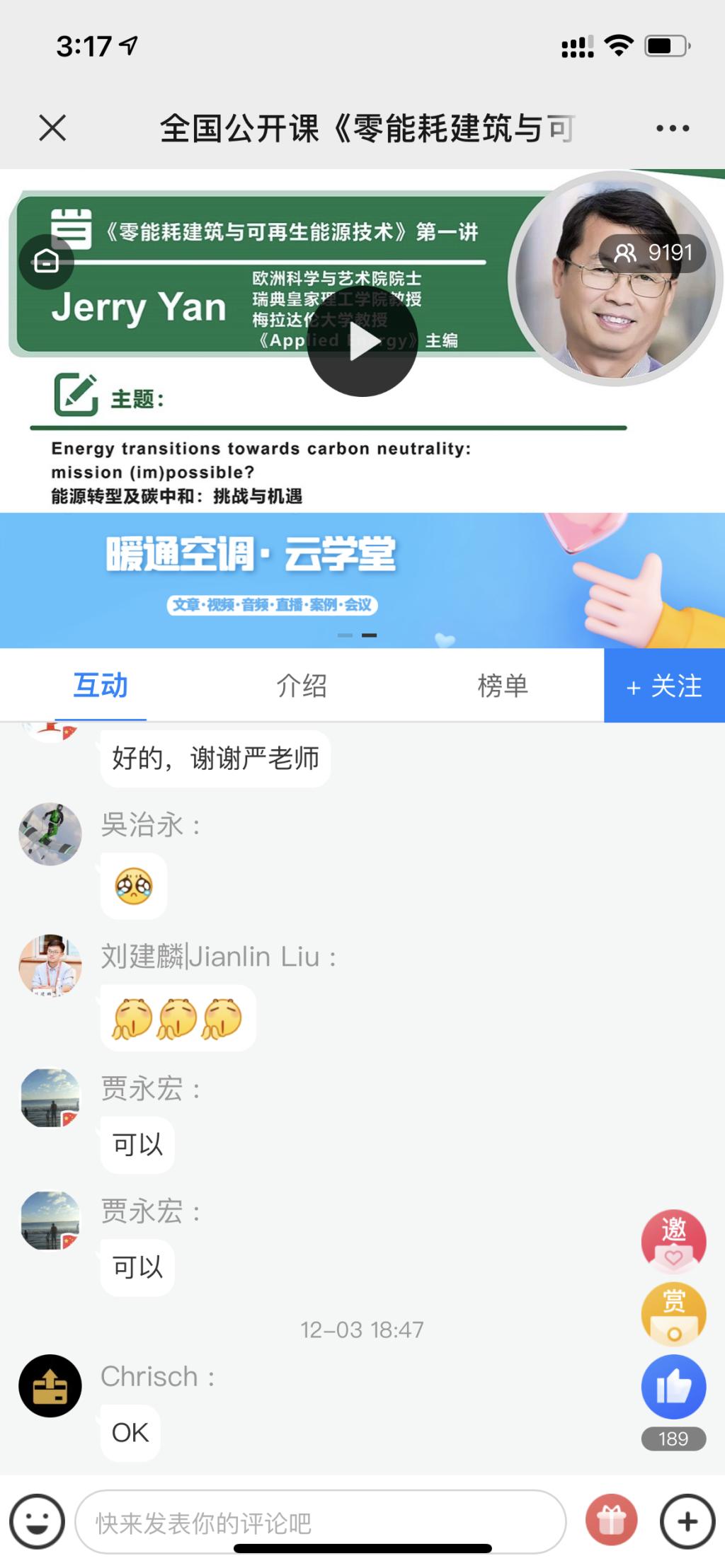 组织发起的《零能耗建筑与可再生能源技术》全国公开课于2021年1月19日圆满结束。本课程得到了中国建筑学会零能耗建筑学术委员会、中国光伏行业协会光电建筑专业委员会和《暖通空调》杂志社的大力支持,共邀请了分别来自瑞典、英国、新加坡、香港以及内地的十二所知名高校和科研院所的十三位院士、大师和知名专家授课。课程主要面向全国建筑环境与能源应用、建筑节能技术、可再生能源利用、储能等相关领域研究生、教学及科研人员,目的在于探索前沿,拓展视野,深化国际交流合作,激发广大学术和教学科研人员对零能耗建筑与可再生能源技术的研究兴趣。