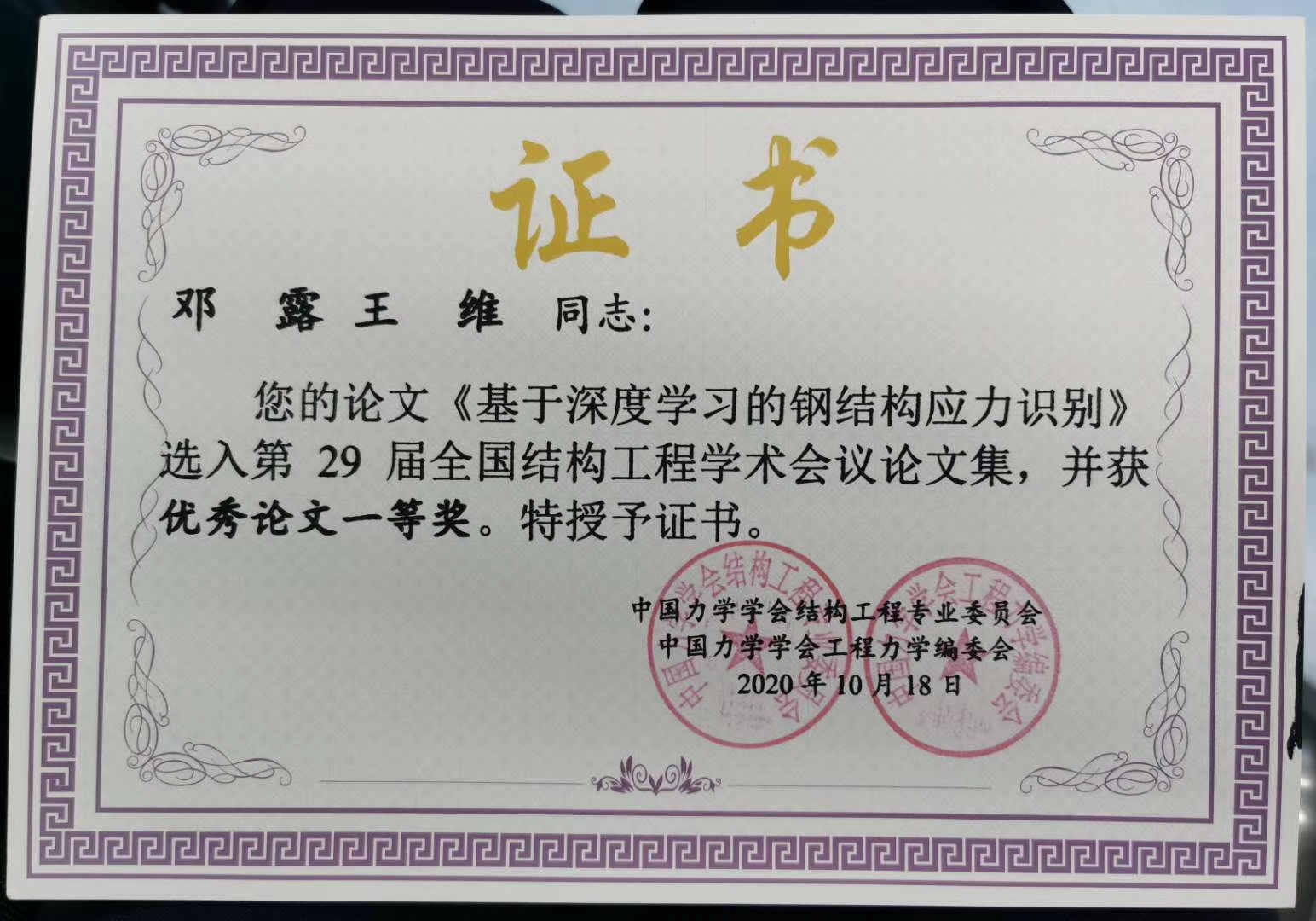 第29届全国结构工程学术会议于10月16日至18日在武汉理工大学召开。本次会议采用线上线下相结合的方式,我院邓露、李正农、周云、孔烜教授、曹然副教授等人线下参加会议。在会议论文评选中,我院邓露教授、王维助理教授合著的论文《基于深度学习的钢结构应力识别》荣获优秀论文一等奖。
