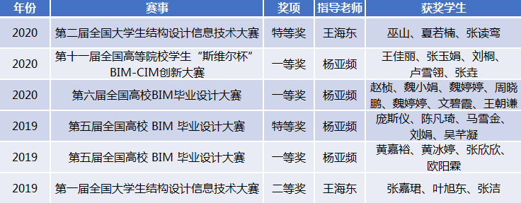 对标“绿色高质量建造”国家战略,秉持“新工科”建设育人理念,抓住部分传统专业向智能建造专业战略转型契机,我院近年来十分重视推进土建类本科生在BIM、CIM技术上的学习与应用,并积极组织学生参加各级学科竞赛,构建“以赛促教、以赛促学”的信息化教学新模式,并取得了丰硕的成果。