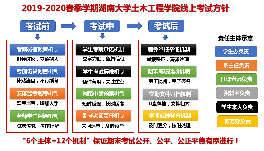 的王牌学院之一,以本科教学严格管理过程规范著称。在分析目前的形势和做了相关调研后,学院党政联席会深入探讨、积极部署,制定出一套学院线上考试的“6个主体+12个机制”的方针。