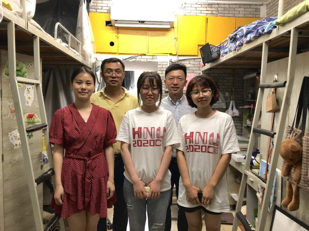 24日下午,学院党委书记、院长邓露,党委副书记秦鹏来到德智学生公寓走访、送别2020届本科毕业生,学工办主任向杰、辅导员彭薪羽、吴柯娆陪同。