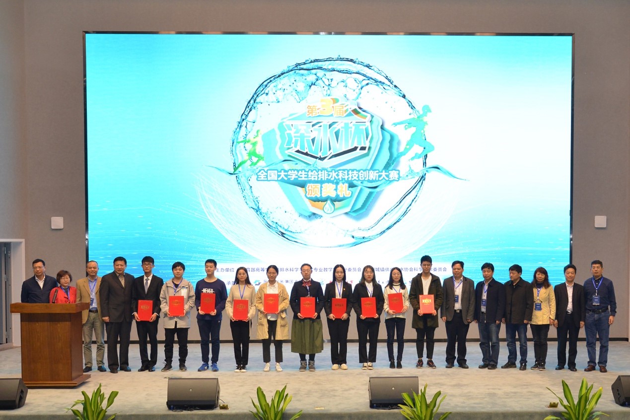 2019年11月10日,第三届“深水杯”全国大学生给排水科技创新大赛在武汉华中科技大学光电国家研究中心报告厅圆满落幕。经过8日-10日三天的激烈角逐,我院参赛队伍从来自全国84所高校的159个队伍共800余名学生中脱颖而出,获得团体一等奖一项、二等奖一项,个人知识竞赛一等奖两项、二等奖一项。