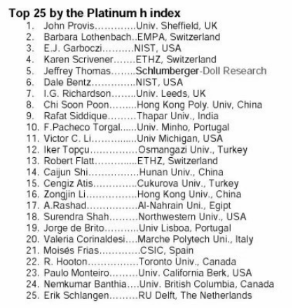 2015年《Archives of Environmental & Occupational Health》 主编Derek R. Smith教授提出了 Platinum H 因子的概念,该因子较Google Scholar 统计的H-index 更加客观地评价科学家在不同领域的建树与贡献,考虑了科学家的从业年限及职业生涯的总贡献,其计算方法为 Platinum H = (H-index×从业年期间发表的文章的总引用量)/(从业年数×从业年期间发表的文章总数)。
