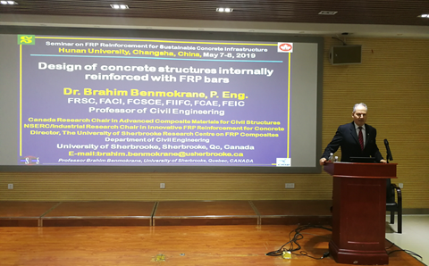 Brahim Benmokrane教授在FRP配筋混凝土领域做出了卓越贡献,是加拿大两院院士、谢布鲁克大学首席教授,新型FRP配筋混凝土结构研究协会主席、加拿大NSERC委员会FRP复合材料研究首席专家、谢布鲁克大学结构用FRP复合材料研究中心创始人及主任、加拿大建筑设计规范(CSA S806)和桥梁设计规范(CSA S6)FRP结构材料标准协会(CSA)委员会主席。主要研究领域为土木工程中FRP材料的应用研究,已发表科研论文560篇。主持多项大型FRP配筋混凝土工程,如Nipigon大桥(加拿大安大略省)、Champlain大桥(加拿大蒙特利尔)、TTC地铁北隧道(加拿大多伦多)、Miami Port隧道(美国)、Tanger Med Port隧道(摩洛哥)等。