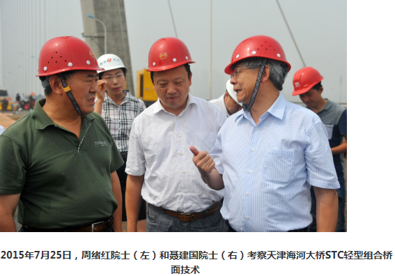 STC轻型组合桥面在岳阳洞庭湖二桥上的应用备受关注。今年九月至今,来自政府部门、设计院、高校、科研单位和施工单位的两百多位领导、专家和同行纷纷前往大桥考察,其中包括中国工程院王景全院士、郑皆连院士和陈政清院士,美国国家工程院院士、中国工程院外籍院士邓文中,交通运输部专家委员会主任、原总工程师周海涛,原总工程师杨盛福等(图3)。