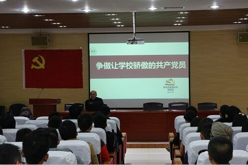 随后,保卫处邓富昌主任更是激动地上台说道:“谁说我们党老了,我在新一代预备党员身上看到了新的生机。”接着,他又从要勇于做,为什么要做,怎样做让学校骄傲的共产党员三个方面对新一代预备党员做了相关要求。他说道:“我们应当对学校有自豪感,要保持信仰的激情,从现在起以合格党员的标准要求自己!”他的讲述时而慷慨激昂,时而妙趣横生,各预备党员听得十分投入,受益匪浅。