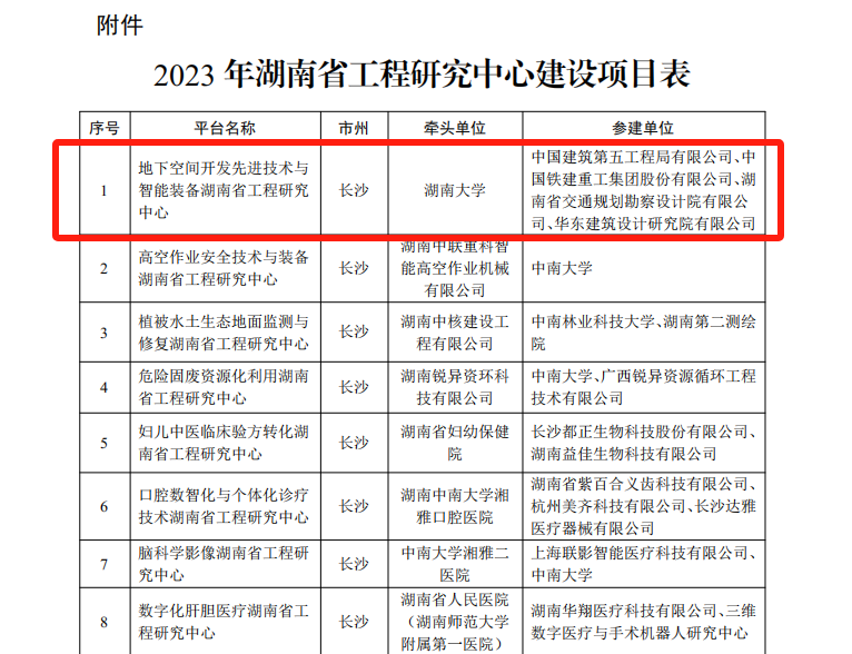 牵头申报,中国建筑第五工程局有限公司、中国铁建重工集团股份有限公司、湖南省交通规划勘察设计院有限公司、华东建筑设计研究院有限公司联合建设的地下空间开发先进技术与智能装备湖南省工程研究中心获批立项, 羞羞漫画