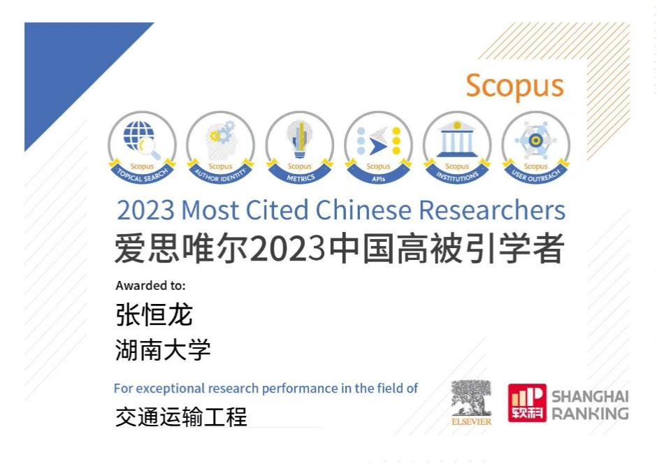 3月27日,爱思唯尔(Elsevier)正式发布了2023年“中国高被引学者”(Highly Cited Chinese Researchers)榜单。学院教师陈仁朋、史才军、林忠财和吴怀娜因其在土木工程的成果影响力入选榜单,张恒龙因其在交通运输工程领域的成果影响力入选榜单。