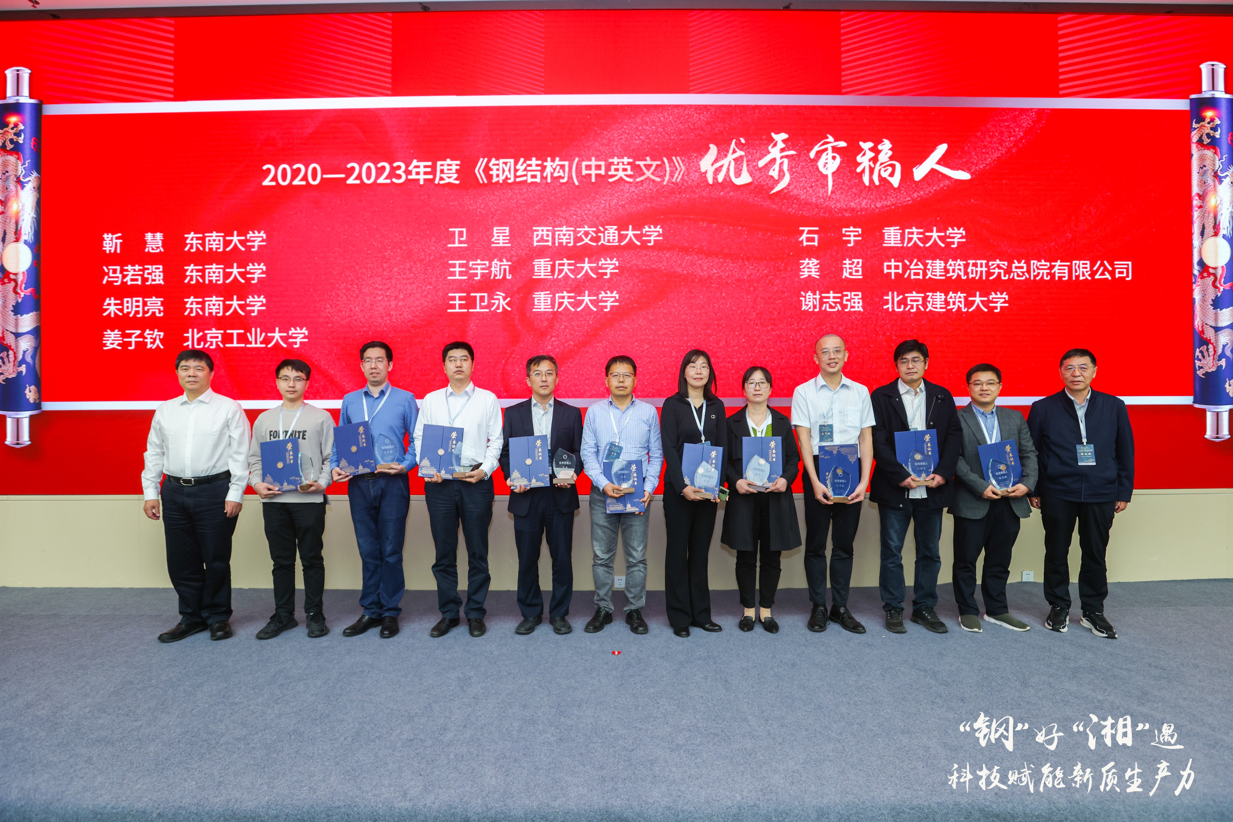 颁奖环节中,编委会为2020-2023年度《钢结构(中英文)》优秀审稿人和2020-2023年度《钢结构(中英文)》卓越贡献专题主编进行了颁奖。