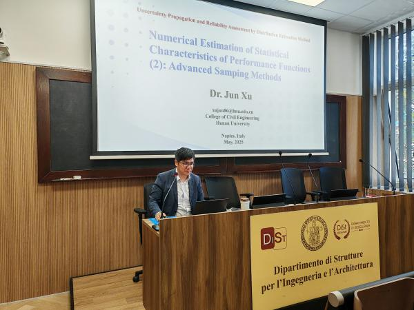 近日,应意大利那不勒斯费德里科二世大学(University of Naples Federico II)结构、地质与地震风险博士课程(Corso di Dottorato in Ingegneria Strutturale, Geotecnica e Rischio Sismico)邀请,学院徐军教授于5月26日至29日赴意开展三场结构不确定性传播与可靠性评估专题讲座。