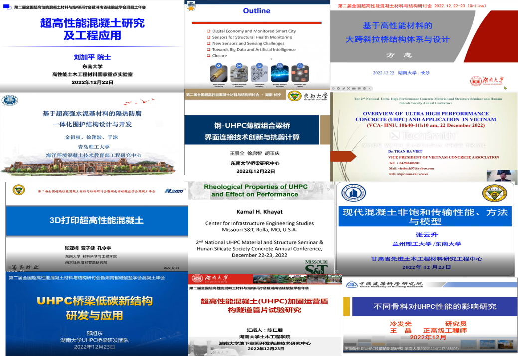 、东南大学、同济大学、加拿大英属哥伦比亚大学、美国密苏里科技大学和越南混凝土协会等二十余所高校和科研机构的专家学者在线参会并作报告。