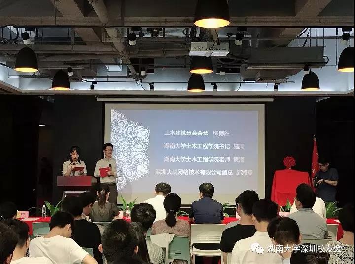 领导施周书记和黄海老师、众多校友嘉宾、在深工作及学习的老校友代表和今年毕业来深校友,共约70人参加了本次聚会。新老校友欢聚一堂,从事地产、政府、设计、施工工作多年的校友为毕业生们分享细分行业的精彩和感悟;同时中秋将至,土木建筑分会共贺中秋,共诉湖大土木建筑之情。