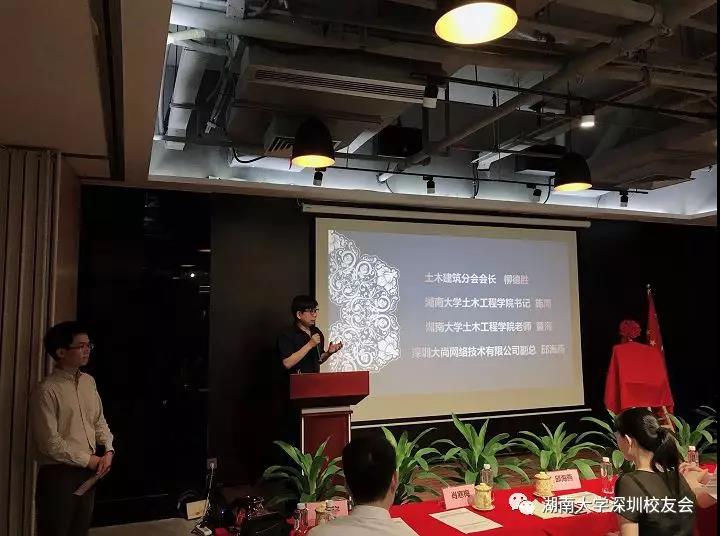 紧接着2018届毕业生代表,土木院毕业生代表黄鑫、建筑院代表沈涛进行了精彩的发言。两位代表的发言表达了2018届全体新人对学校的感恩,对分会的感谢,代表了湖大2018届土木建筑毕业生们为建设深圳贡献力量的决心。