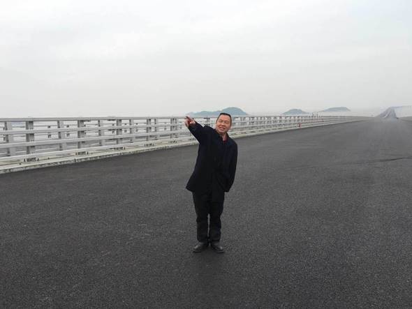 一眼望不到头的桥面,还散发着新铺的沥青的味道。远处的海岛,在波涛中欲隐欲现。碧波茫茫,天海一色。大桥有如巨龙,蜿蜒盘旋在碧波之上。生逢盛世,江山如画!